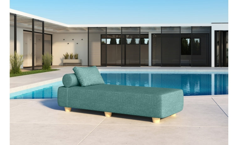 The Alvy Outdoor Daybed Sun Lounger serves as part daybed, sitting bench, and sofa. This sleek, modern piece of furniture is designed to fit perfectly into any outdoor space. Crafted with dense, supportive foam and covered in machine-washable, fade-resistant Sunbrella® fabric, with a matching bolster and pillow. Inner moisture liners protect the foam, while a ripstop nylon slipcover provides protection against the elements for years of enjoyment. Six solid maple wood feet and a wood base provide enduring stability and support. Easy to move so you can lounge comfortably anywhere outside. Choose from 9 shades to find the perfect fit to transform your outdoor space into an oasis.