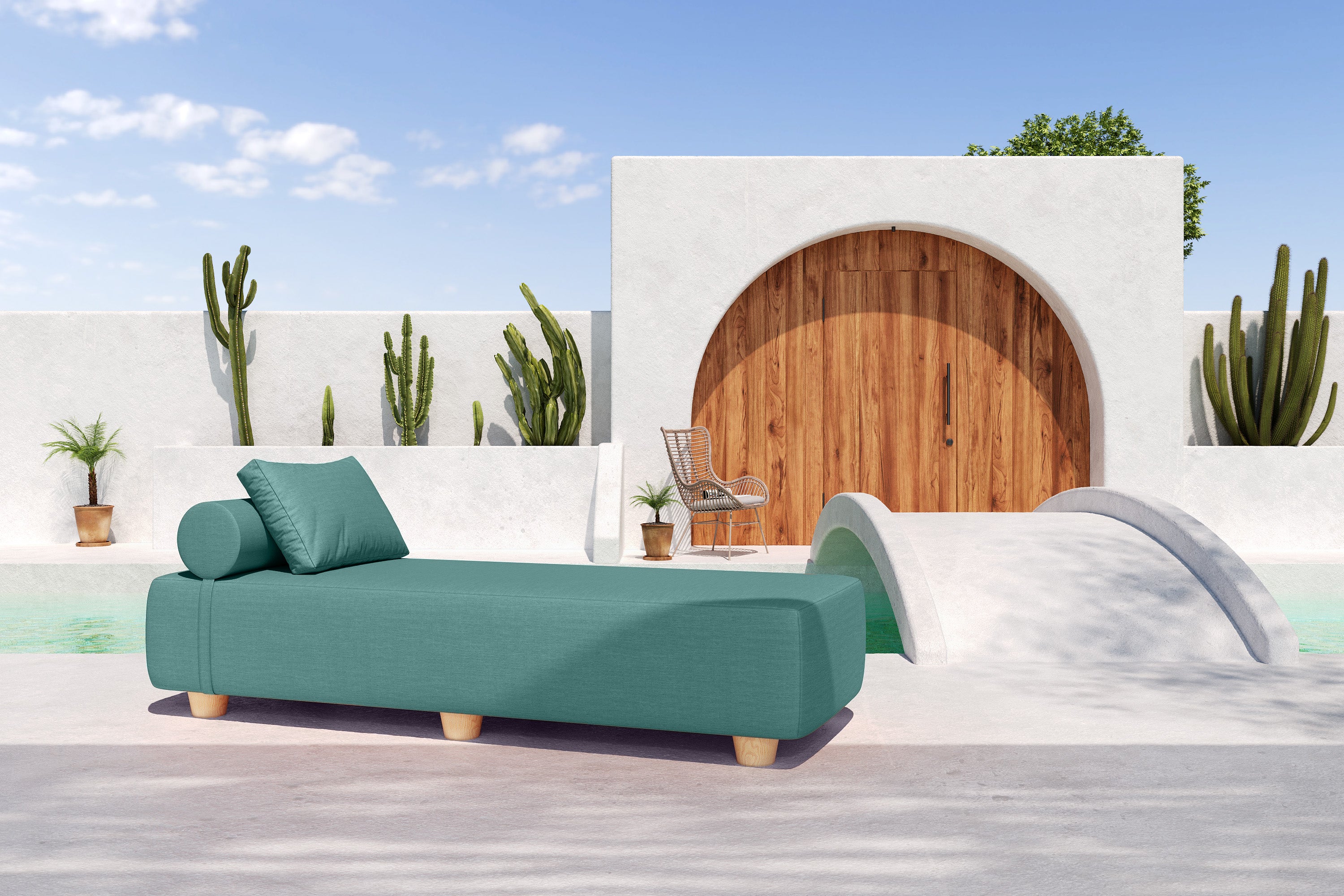 - Outdoor Daybed Sun Lounger with bolster and pillow.