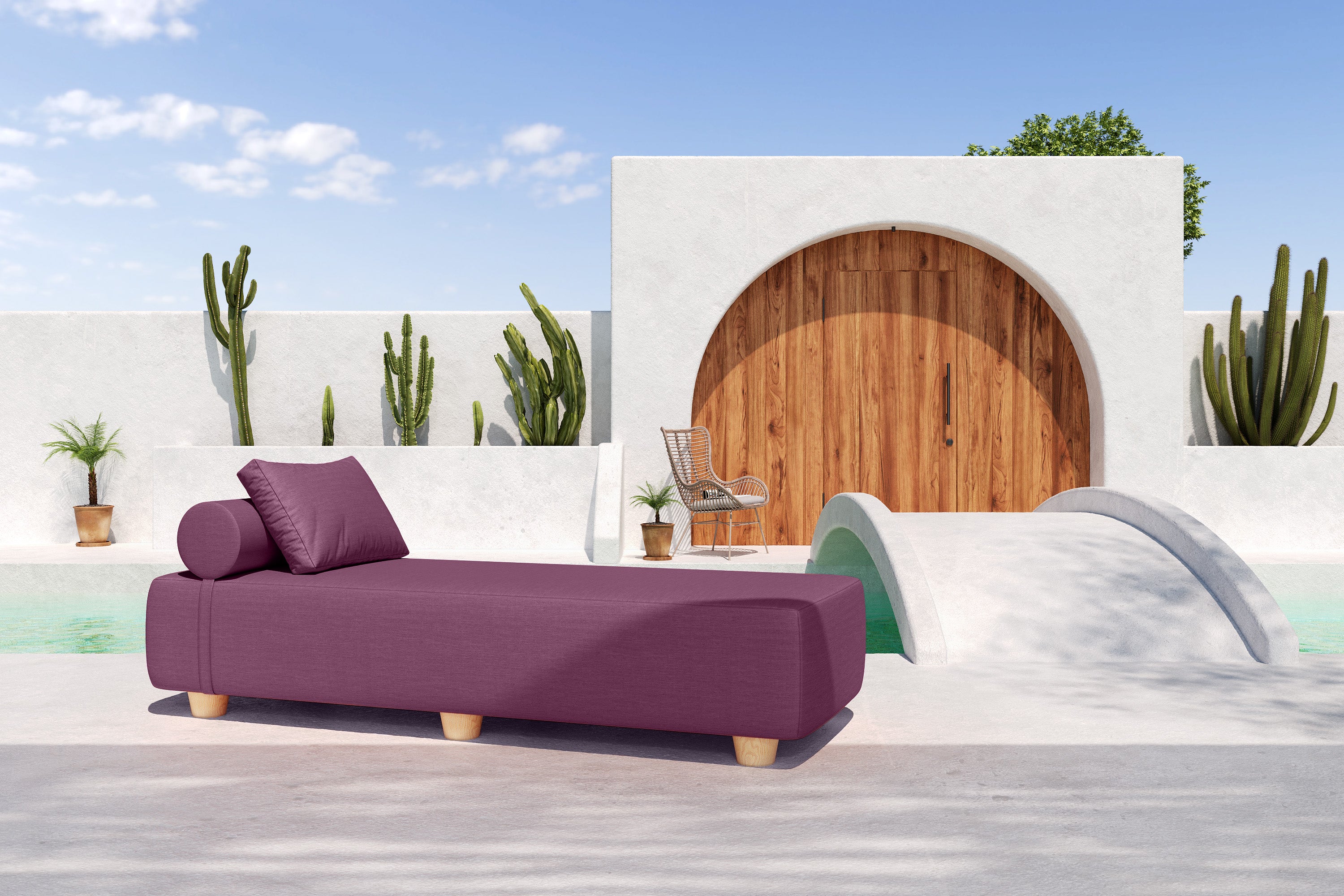The Alvy Outdoor Daybed Sun Lounger serves as part daybed, sitting bench, and sofa. This sleek, modern piece of furniture is designed to fit perfectly into any outdoor space. Crafted with dense, supportive foam and covered in machine-washable, fade-resistant Sunbrella® fabric, with a matching bolster and pillow. Inner moisture liners protect the foam, while a ripstop nylon slipcover provides protection against the elements for years of enjoyment. Six solid maple wood feet and a wood base provide enduring stability and support. Easy to move so you can lounge comfortably anywhere outside. Choose from 9 shades to find the perfect fit to transform your outdoor space into an oasis.