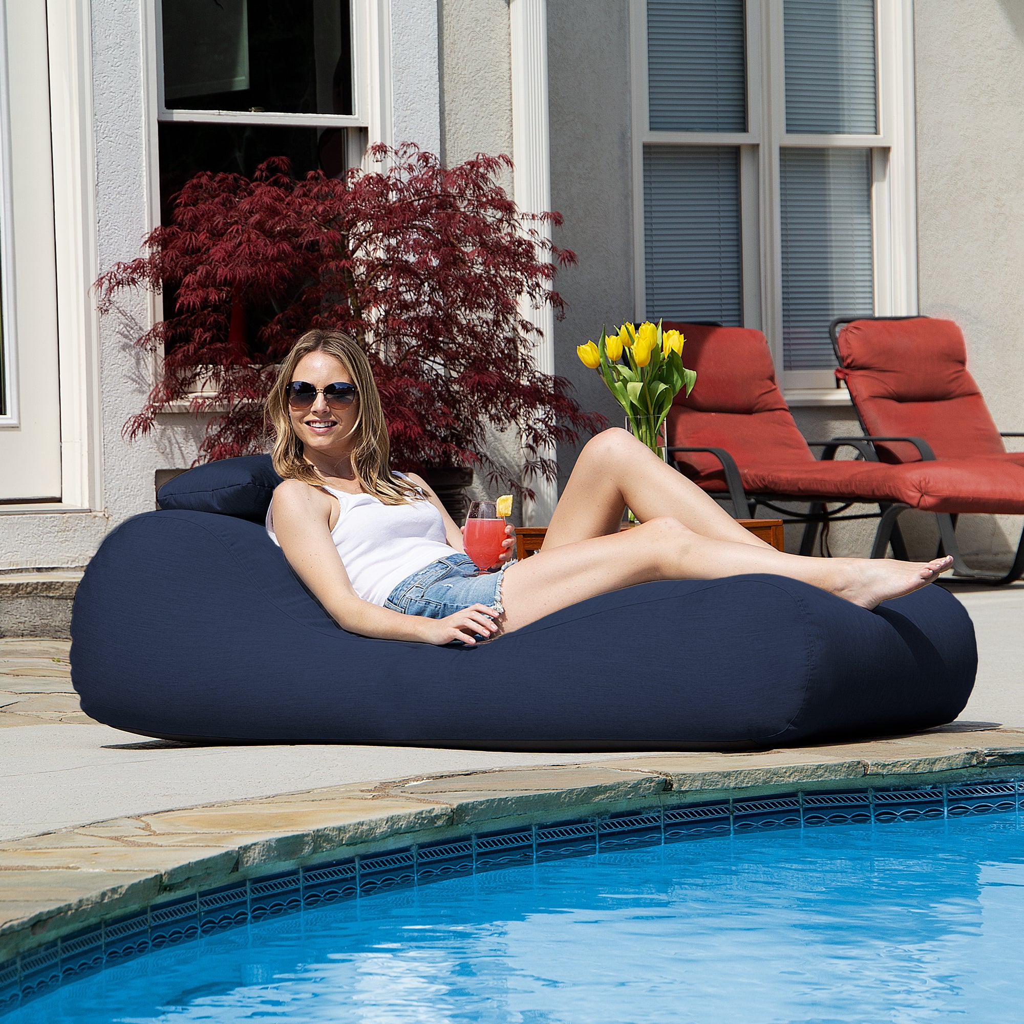 - A modern bean bag chaise / recliner, perfect for the patio, deck, porch, or poolside.