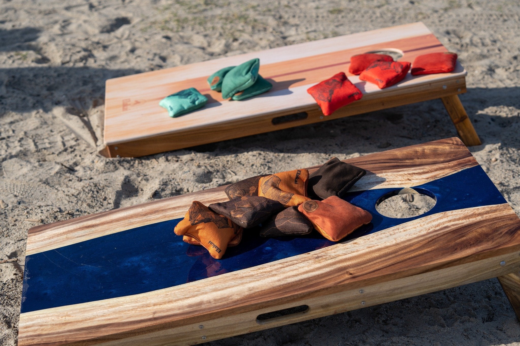 These handcrafted, outdoor-inspired dual-sided bags are perfect for any cornhole player. Designed from carefully chosen materials for their feel and ability to handle the elements, these bags provide a smooth and comfortable throwing experience and travel easily on the board. Constructed with premium suede and woven fabrics, these all-weather, handmade bags are optimal for strategized control to both grip and glide. Pair with Elakai travel-size cornhole boards. A retro throwback for your best throw forward!