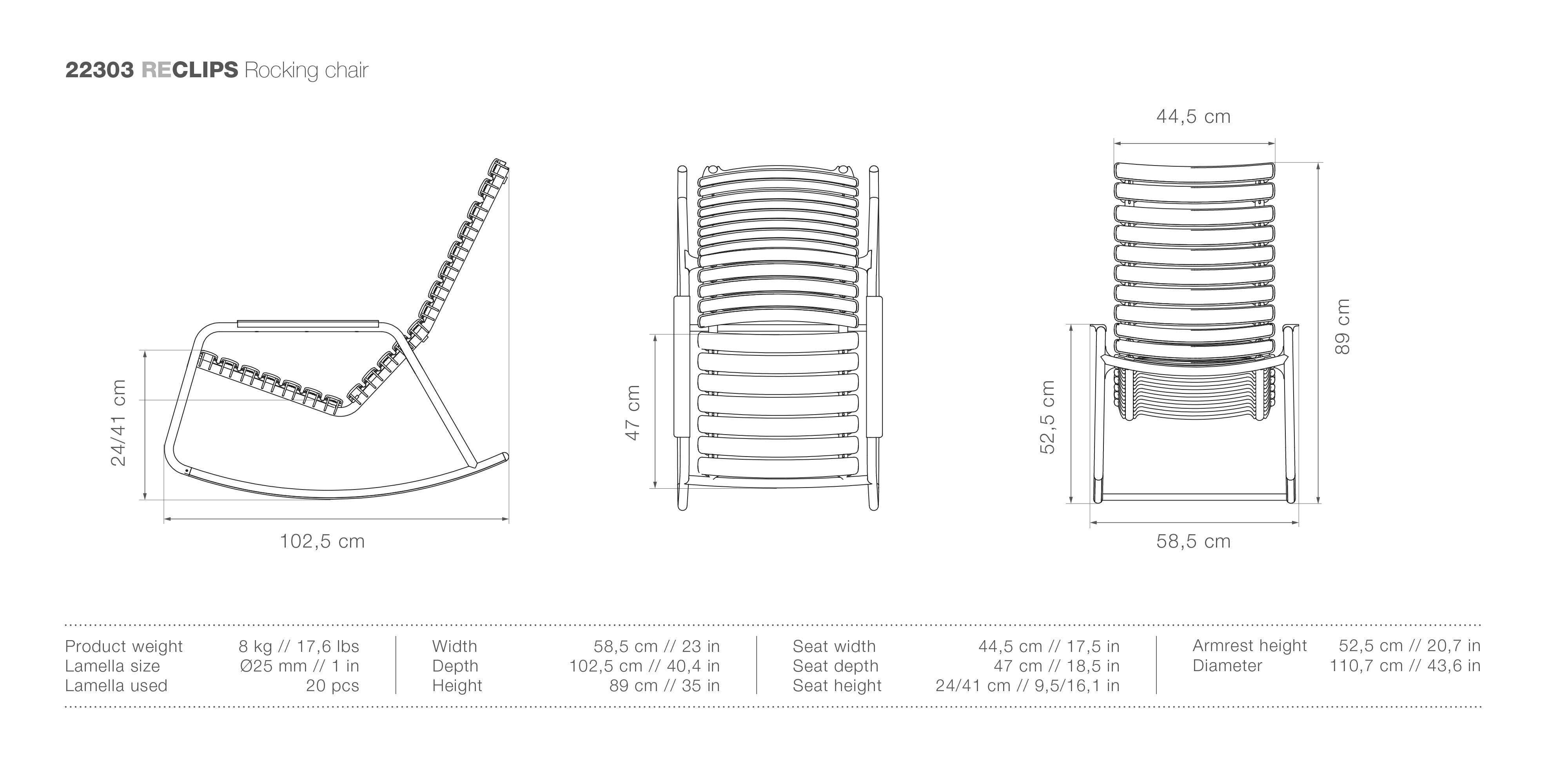 The RECLIPS Rocking Chair is the perfect addition to your outdoor living space. Constructed of plastic lamellas, it is airy and comfortable.