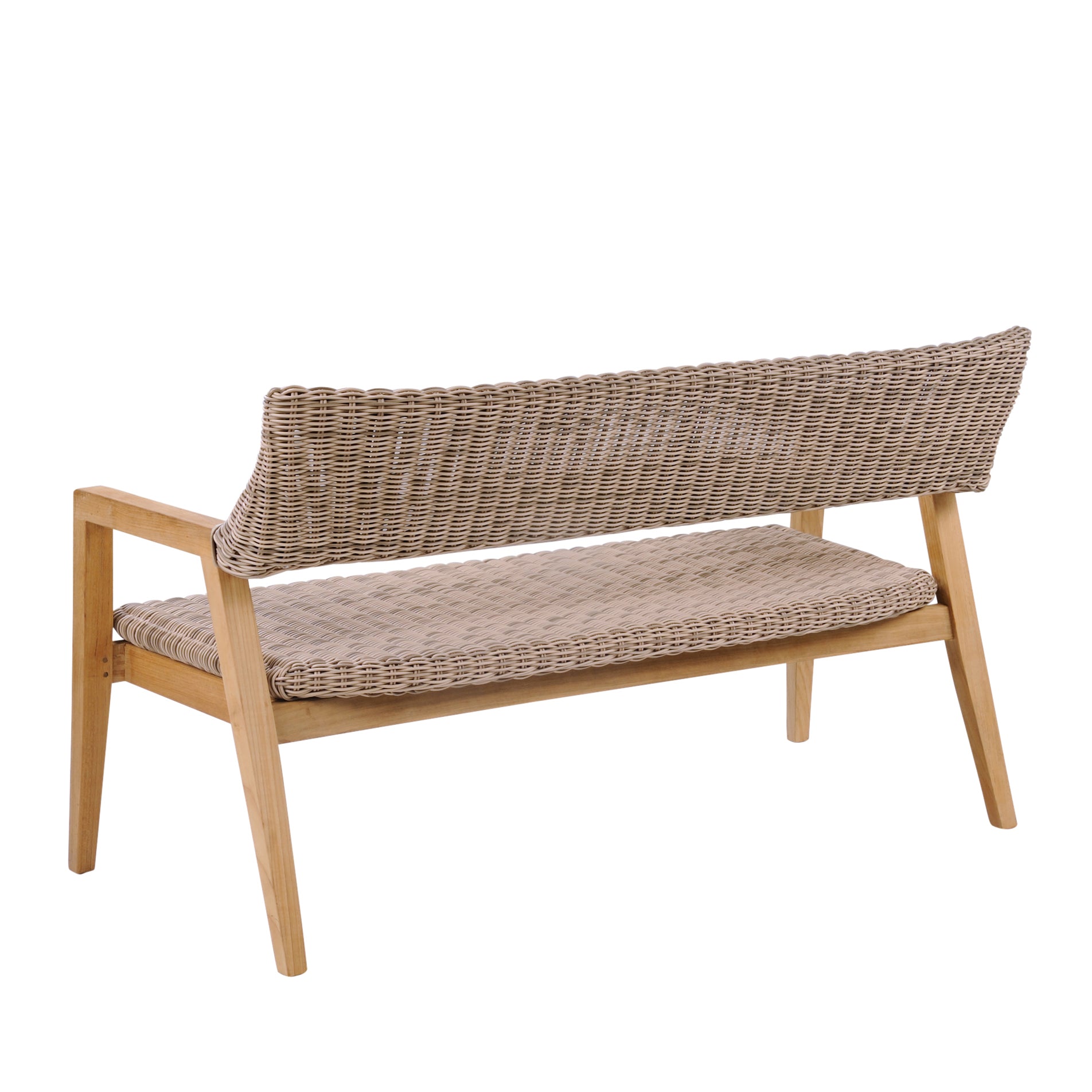 To clean your woven furniture, rinse the frame with fresh water using a high hose pressure. Be careful to avoid any teak details on the furniture as the high pressure can erode the surface of the timber. Optionally, you may wash the woven material with mild detergent and warm water using a soft brush. After washing, rinse with fresh water until there are no soap bubbles remaining. Allow the furniture to air-dry. If using a specialty outdoor furniture cleaner, avoid using a foaming product, as foam cleaners can leave residue in the gaps of the weaving and later attract dirt.