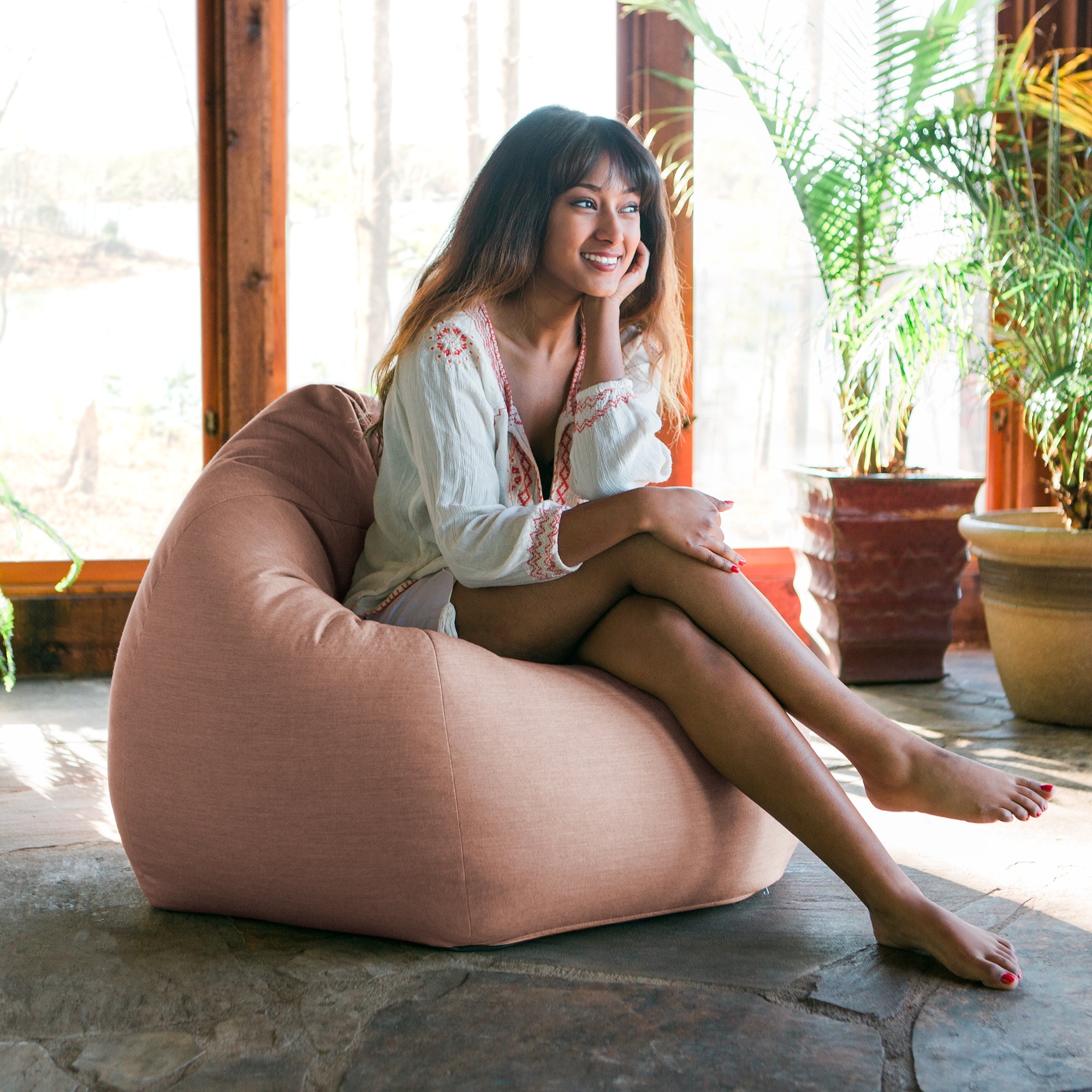 Reinvent your patio with the Kiss Outdoor Bean Bag Chair from Jaxx Bean Bags! Its footprint allows it to fit anywhere, and the durable Sunbrella® cover can withstand any surface. Use the reinforced stitched polypropylene handle and take it from the porch to the poolside for superior sunning. The Kiss Outdoor Bean Bag is built to last with a virgin polystyrene bead filling that offers support and flexibility to respond to any position. Bring this little beauty inside when the weather turns cold for lightweight seating anywhere in the house. No assembly required.