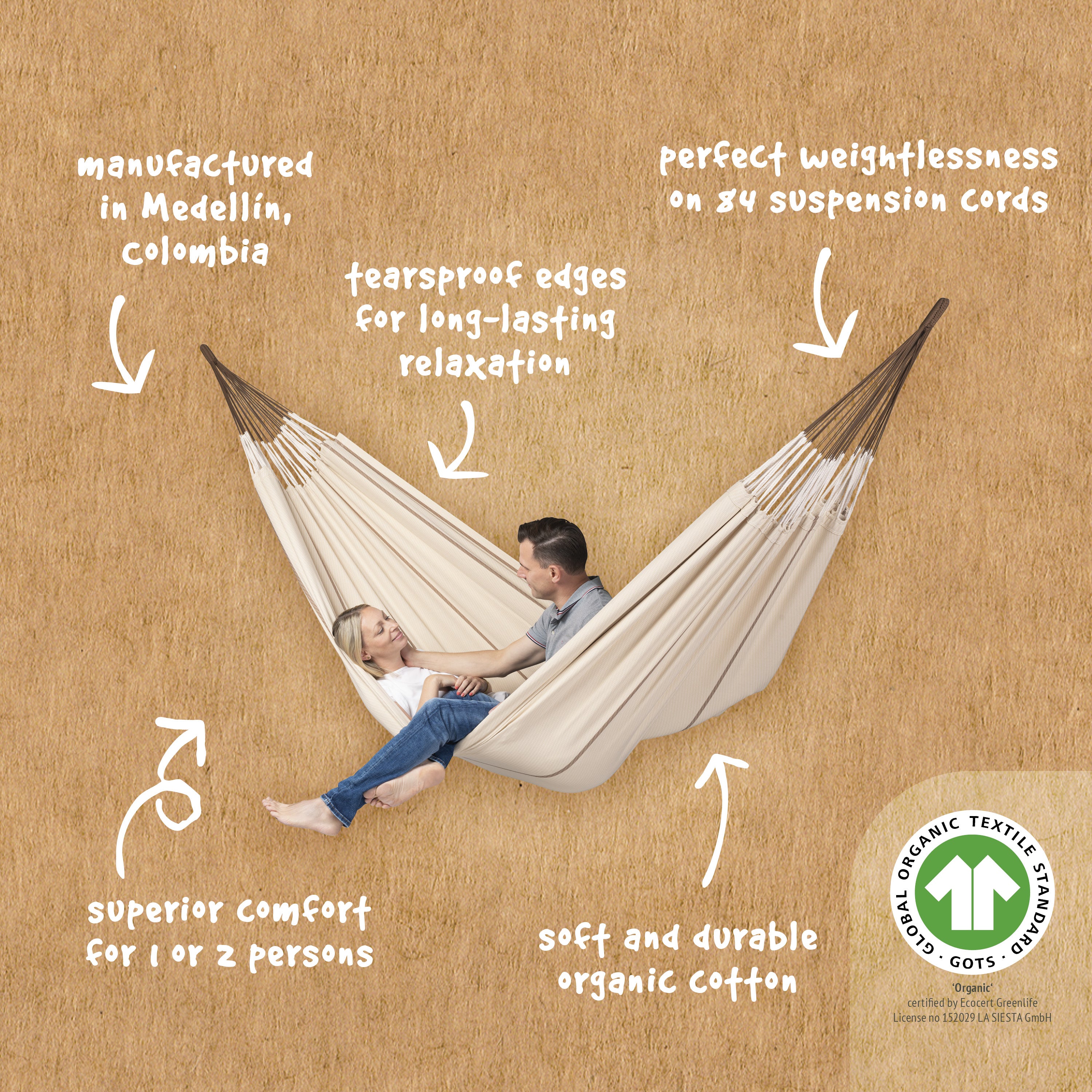 La Siesta Modesta Organic Cotton Double Classic Hammock - Nougat
