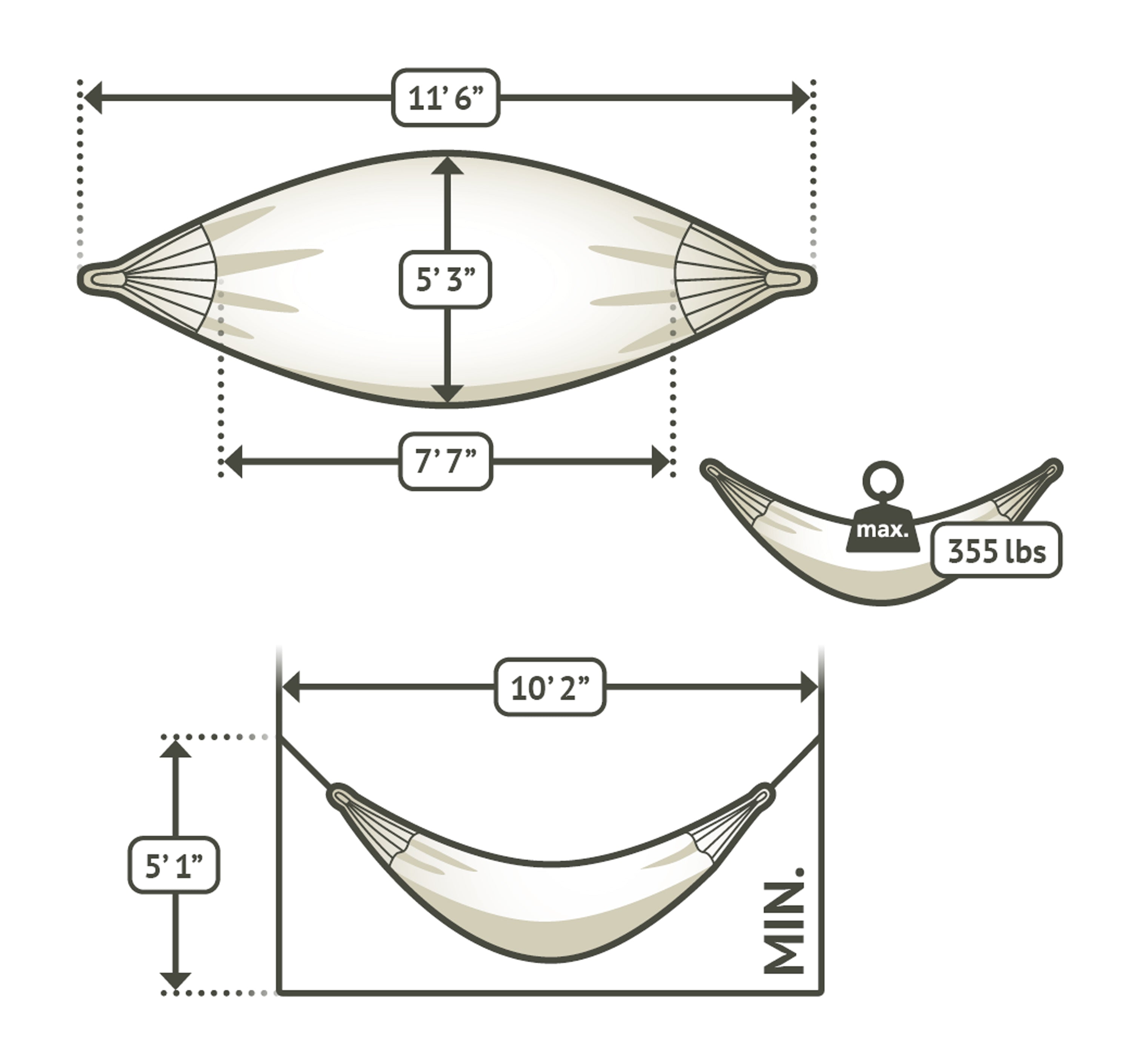 - Total Hammock Length: 11'6"
