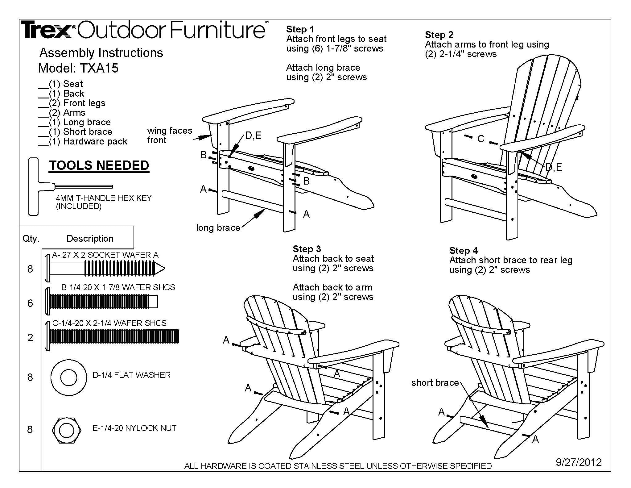 Relax in the comfortably contoured Trex® Outdoor Furniture™. This carefree furniture is what summertime is all about. It comes in several attractive, fade-resistant colors that are designed to coordinate with your outdoor living space. Made in the USA and backed by a 20-year warranty, this durable furniture is constructed of solid, eco-friendly, HDPE recycled lumber. It is easy to maintain because it is resistant to weather, food and beverage stains, and environmental stresses. Although it resembles real wood, it won’t rot, crack or splinter. You will never have to paint or stain it. You can rest assured this furniture will last through years of good, old-fashioned face-to-face conversation.